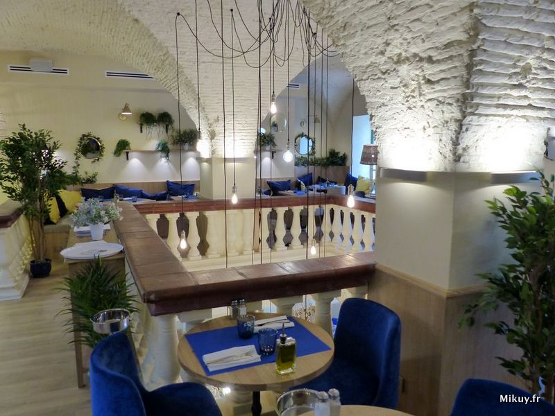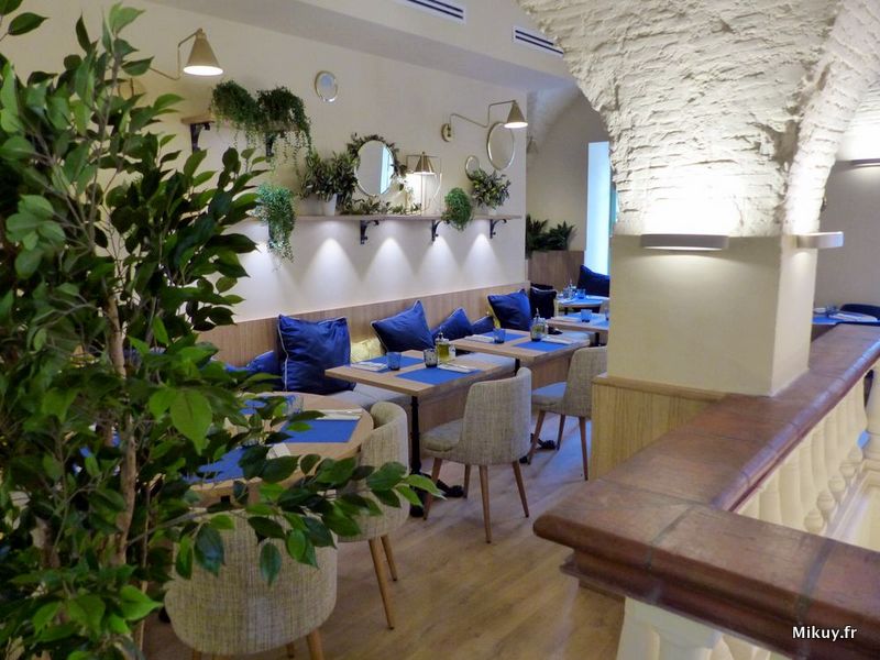 Où s’asseoir ? Comme un chat, j’ai pris le temps de choisir ma place : en terrasse ? Je suis frileuse…Près de la fenêtre ? Envie de quelque chose de plus tamisé… Au pied du citronnier, au centre de la salle ? J’ai envie d’un coin cocoon aujourd’hui. Une banquette m’offre son moelleux. De là, je vois tout ce qu’il se passe. Si la salle à l’étage avait été ouverte, je me serais lovée dans une de ses petites alcôves garnie de coussins.