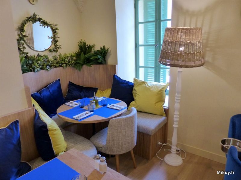En sirotant un verre de vin – italien bien sûr -, je me suis laissée charmer par le lieu. J’aime ses couleurs bleue et jaune savamment réparties, sa lumière généreuse ou diffuse, ses atmosphères propices à la gourmandise, la sérénité d’un service qui vous dit « bienvenue à la maison », on s’occupe de tout. Car on est ici comme à la maison – casa – sur le Cours Saleya – Leya – L’endroit idéal pour savourer le goût de l’Italie…