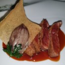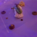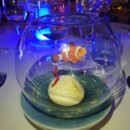 S’il me fallait ne vous conseiller qu’un seul plat – et là je dois réfréner mes élans car tout était délicieux – je choisirai le salmorejo de tomate et de fraise aux crevettes… ou peut -être la sole, fleur de courgette, curry, chutney… et en dessert le Nemo, crème glacée à l’eau de mer, mousse d’amande présenté dans son aquarium : tout était délicat, goûteux, pictural, osé parfois (je pense à l’utilisation de tamarin) et accompagné de très bons vins. Oui, je sais, j’ai cité 3 plats…