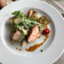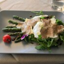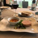 Soupe de Poissons de Roche de la Baie de Théoule; Pavé de Maigre, nage de Petits Pois au Romarin et côte de Sucrine; Quasi d’Agneau rôti au Citron confit et Légumes rôtis;Crousti fondant Praliné et Chocolat excellence…
