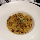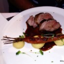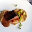 Oeuf parfait à la truffe d’été, crème de parmesan, duxelle de champignons noisettes; thon mi-cuit Rossini, jus de veau, dos de denté, fenouil à l’orange, jus de vin aux oignons grelots; tartare de boeuf façon Corse, menthe, brousse, figues; cheesecake à la violette myrtilles.