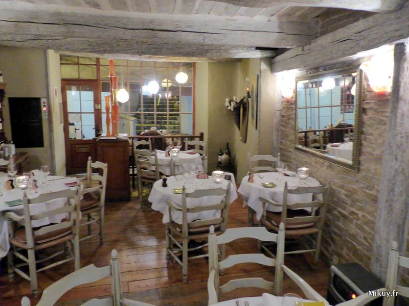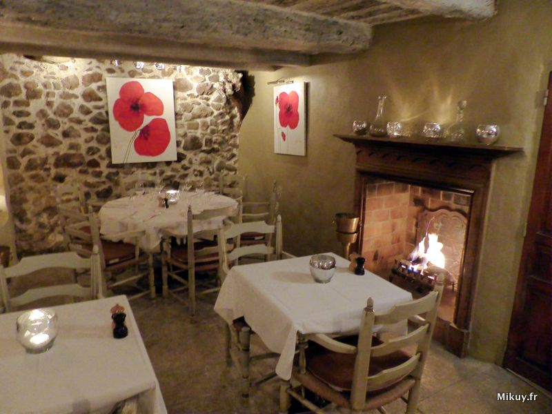 De cette belle maison sur 4 niveaux, vous aurez accès aux deux premiers où se situent les deux salles de restaurant et la cave : la première voûtée et blottie autour de sa cheminée et l’autre avec ses petites alcôves propices aux chuchotis… Tables nappées, serviettes en tissu. En toile de fond: les sculptures en verre d’Antoine Pierini et les peintures de Jean Philippe Ghiglionne : on est bien, là !
