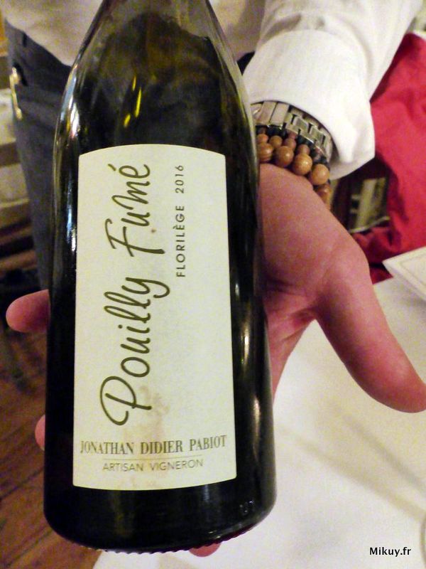 Ci-dessous, les vins qui nous ont accompagnés – avec modération – tout au long du repas. Et puis – hors photo – j’aime toujours cette présentation des petits pains qu’on vous sert avec une pince en vous demandant si vous les préférez nature, aux olives, aux céréales… Grande classe !